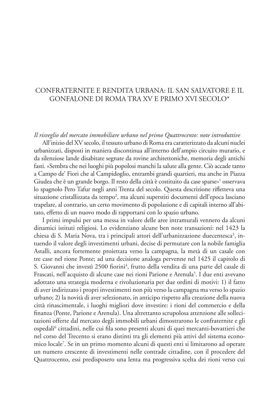 Confraternite e rendita urbana: il San Salvatore e il Gonfalone di Roma tra XV e primo XVI secolo