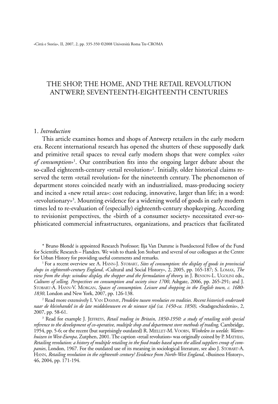 - citazione: B. Blondé, I. Van Damme, The shop, the home, and the retail revolution: Antwerp, seventeenth-eighteenth centuries, "Città & Storia", II/2, pp.335-350, DOI: 10.17426/42993
