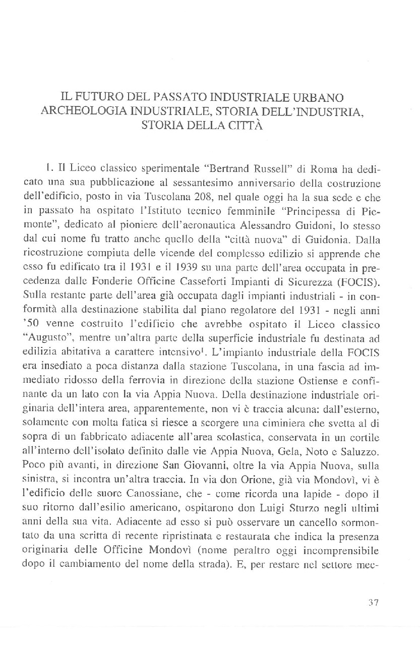 - citazione: A. Parisella, Il futuro del passato industriale urbano. Archeologia industriale, storia dell'industria, storia della città, "Roma moderna e Contemporanea", VIII/1-2, pp.37-81, DOI: 10.17426/64665